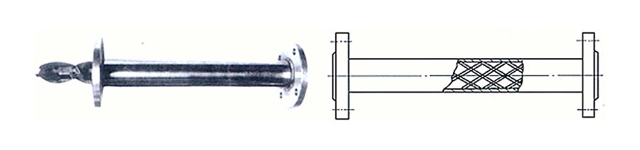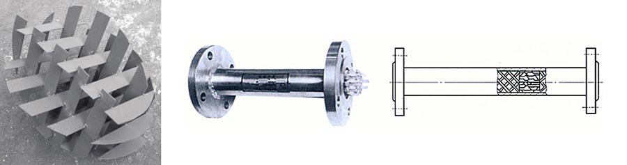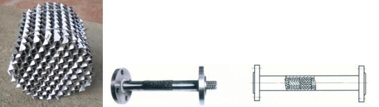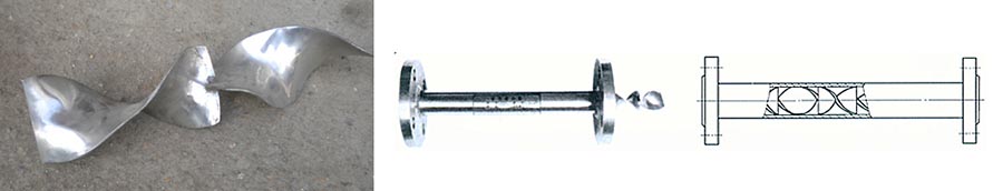 SK單元由單孔道左、右扭轉的螺旋片組焊而成,它的技術性能:最高分散程度≤10 u m,液—液、液—固相的不均勻度系數為α√ x≤1-5%。