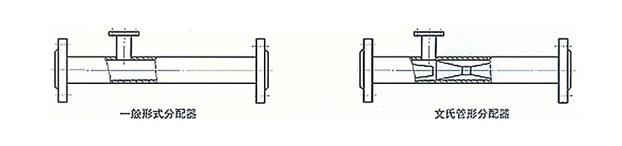 適用于二股或二股以上流體進料,當主流與次流壓力不平衡時選用文氏管形分配器, 當主流與次流壓力平衡時選用一般形式分配器。