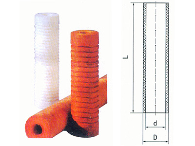 線纏繞式濾芯是由紡織纖維紗精密纏繞在多孔骨架上,控制濾層纏繞密度及濾孔形狀而制成不同過濾精度的濾芯。