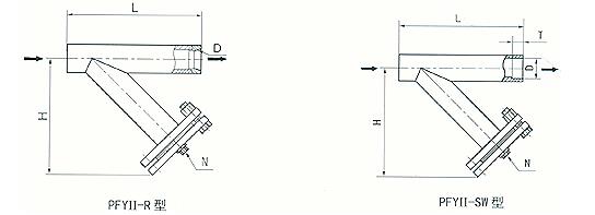 (4)Y型焊接錐管螺紋式(PFYII-R型)、承插焊式(PFYII-SW型) (DN15—40,PN≤5.OMPa)